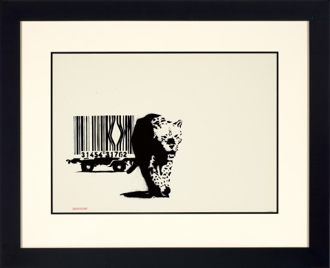 This work is accompanied by a certificate of authenticity from Pest Control, London, issued in 2012, complete with one half of the corresponding, numbered, Di–Faced Tenner note attached.