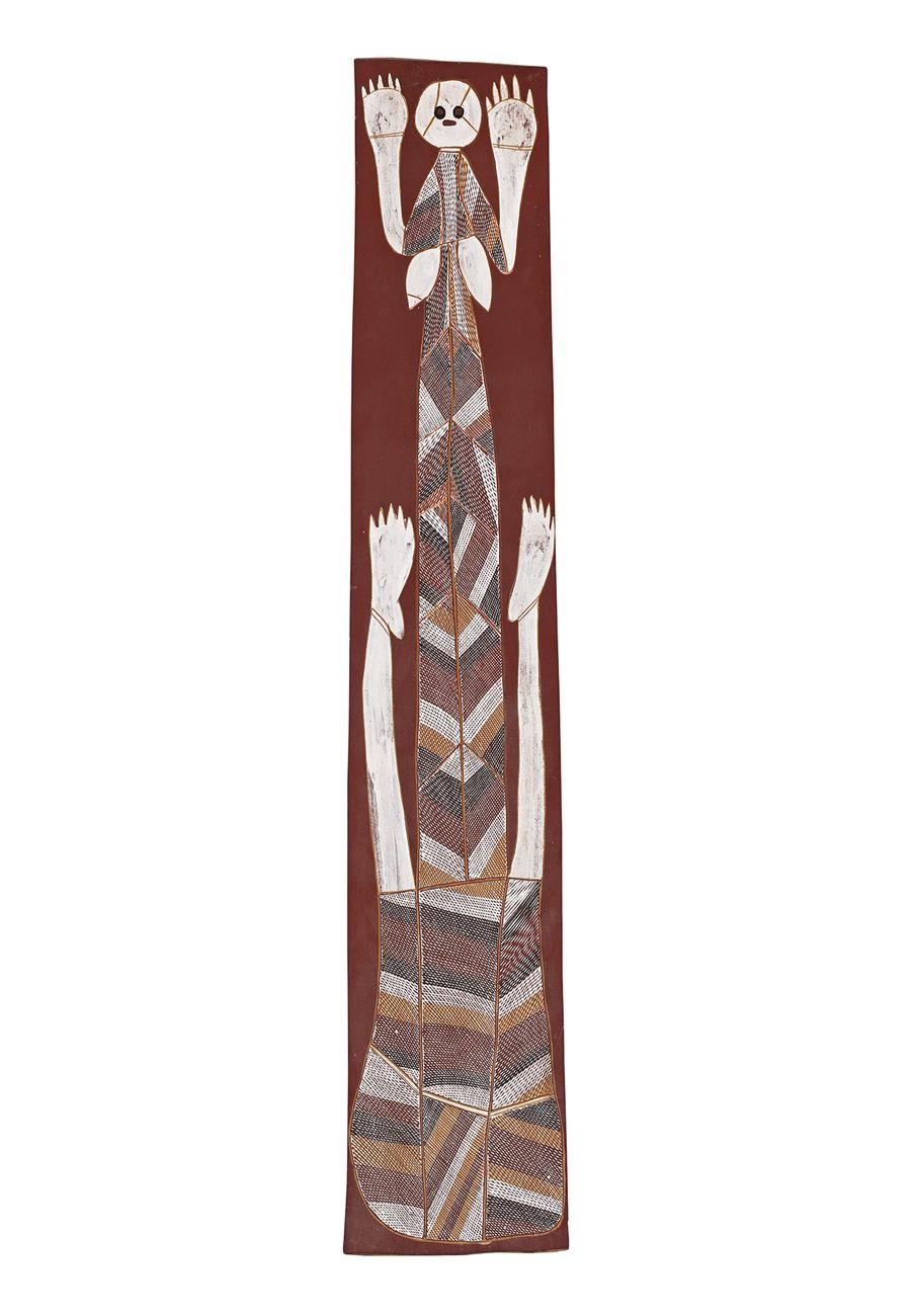 Namarrkon Ngal-daluk, the Female Lightning Spirit, 1983, earth pigments on Stringybark, 136.9 x 40.4 cm, in the collection of National Gallery of Victoria, Melbourne