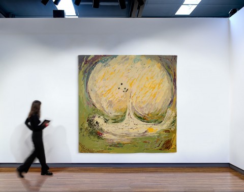 Replicating the subtle streaks of colours from Boyd’s pastel works of Saint Francis and his gestural ferocity of the Nebuchadnezzar suite, the master weavers of Tapeçarias de Portalegre in Portugal translated Arthur Boyd’s imagery into textile on a vast scale. Encouraged by Frank McDonald, director of Clune Galleries and an enthusiast for the medium, tapestry became in the early 1960s a medium of interest for many Australian artists, including John Olsen, Sidney Nolan and John Coburn. Cloud was among the first tapestries to be woven from Arthur Boyd’s paintings, followed by a monumental 20-piece cycle of Saint Francis, now held in the National Gallery of Australia and to be the subject of a major solo exhibition there opening in June 2026.