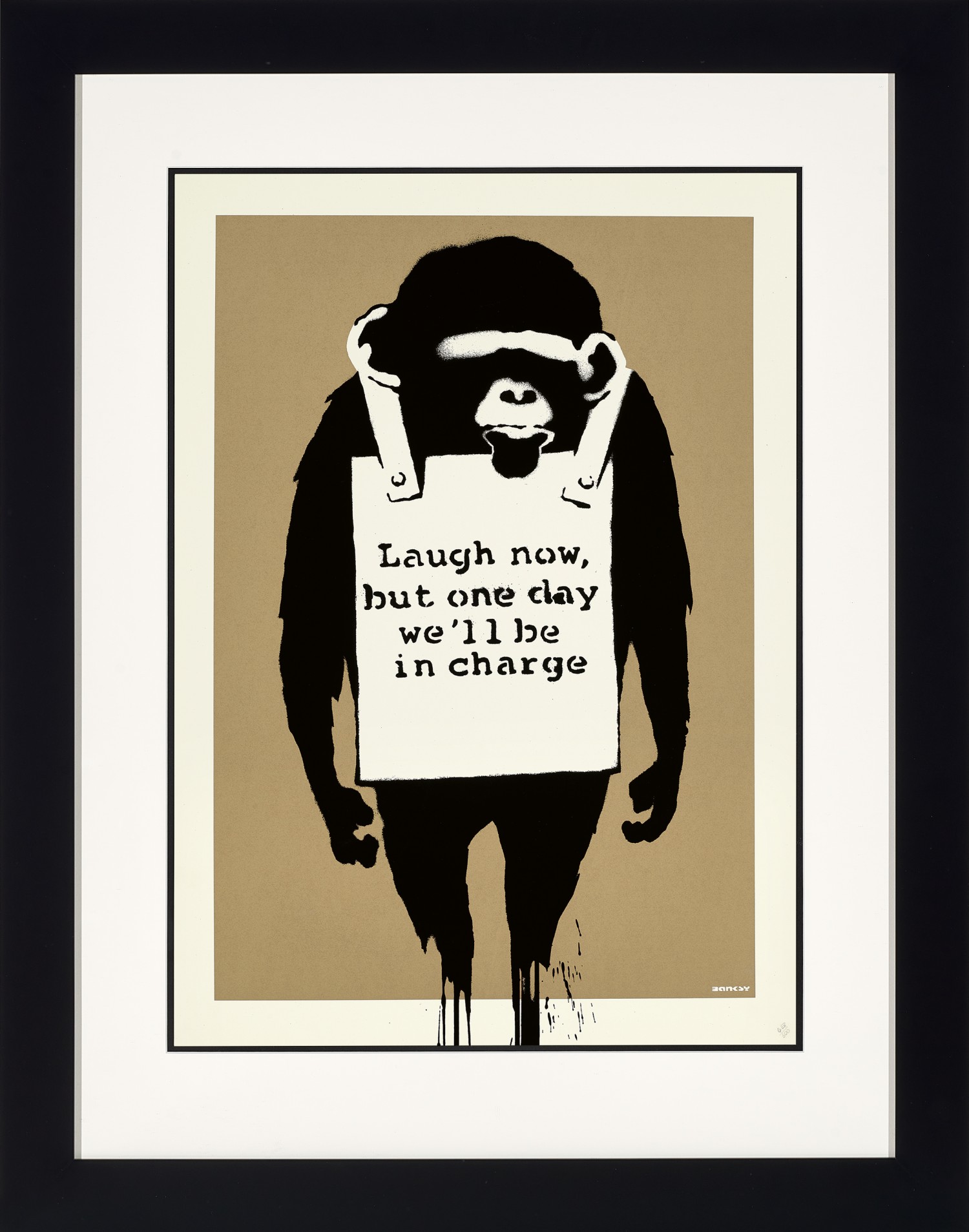 This work is accompanied by a certificate of authenticity from Pest Control, London, issued in 2021, complete with one half of the corresponding, numbered, Di–Faced Tenner note attached.