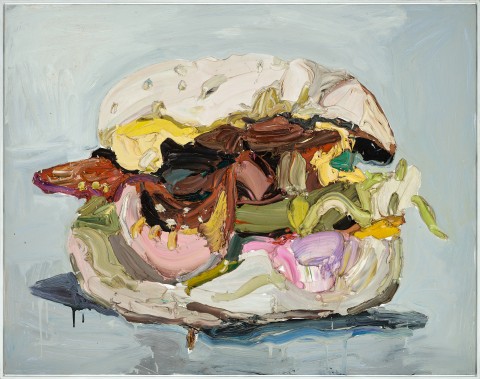 Ben Quilty is the closest thing Australia has to a celebrity artist and as Brooke Turner suggested, some of his public acclaim can be attributed to his blokey charisma and masculine subject matter: ‘artists do better if they’re blokes first, artist second… with references to cars and soldiers, birds, burgers and babies.’1 Quilty’s longstanding dedication to the reflection of the activities and machismo of the Australian white male would not be complete without images of the occasional burger, packed with bacon, egg, beetroot and a hashbrown – humorously known throughout the land as ‘the lot’!