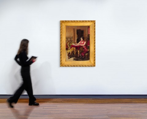 When the present work was first exhibited in the 7th Annual Exhibition of the Twenty Melbourne Painters Society in 1925, The Argus critic noted, ‘From Miss A. M. E. Bale an interesting portrait of rich colour scheme entitled “Mollie” claims attention by its sound and craftsman-like qualities of tone and form.’2 The Age similarly praised her achievement, observing: ‘Miss Bale is showing some admirable work. No. 8 (“Mollie”) is a clean and well-painted study of a girl, and No. 9 is an excellent still life. No. 13 (“Autumn”) is the best landscape effort of this painter we have seen.’3 Further acclaim followed in 1930, when Sir Arthur Streeton, reviewing an exhibition at the Athenaeum Gallery, wrote: ‘Seven exhibits by Miss A. M. E. Bale are dominated by No. 44, “Mollie”, a figure picture well-conceived and thoroughly well painted. It is a thorough success, and it stands upon a much higher plane than the artist’s flower painting.’4