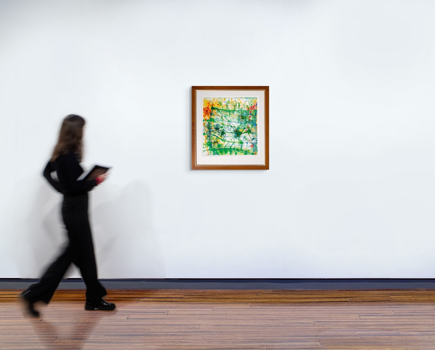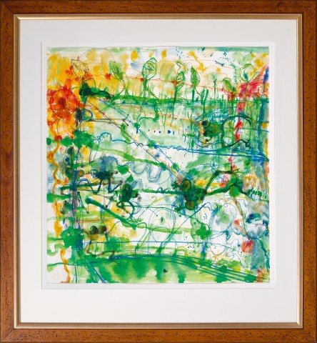 With his distinctive meandering line, exuberant mark-making and masterful command of colour, John Olsen is widely revered as one of the most significant figures of a generation that reshaped Australia’s perception of its natural environment. Across a career spanning more than seven decades, he sustained an unerring fascination with the natural world in all its myriad forms, producing evocative visions of the landscape that arguably captured the spirit and character of the country more eloquently than any other non-Indigenous artist before him. Self-described as a ‘wandering minstrel’2, Olsen travelled extensively throughout Australia and beyond, absorbing each terrain with poetic attentiveness; yet it was the extraordinary fecundity of the continent’s fertile waterways – its teeming wetlands, estuaries and lily ponds – that would emerge as his most enduring muse.